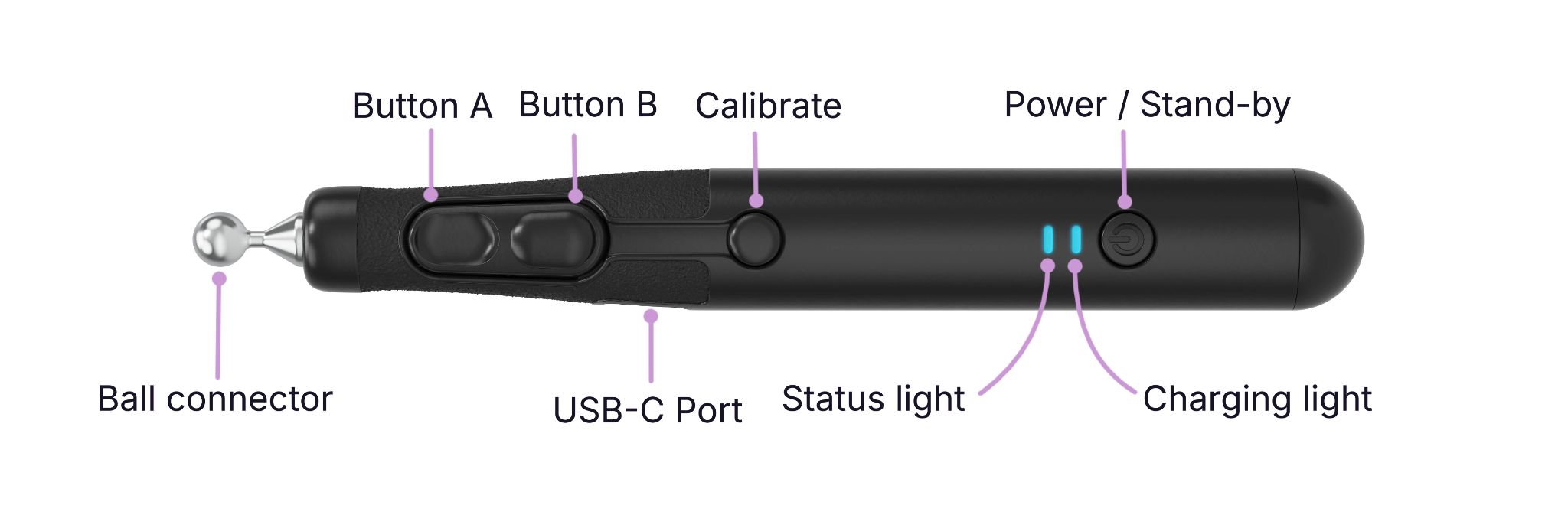 - Schalten Sie Ihren VerseGrip-Stift aus, indem Sie den Ein-/Aus-Schalter gedrückt halten, bis die Statusanzeige erlischt.